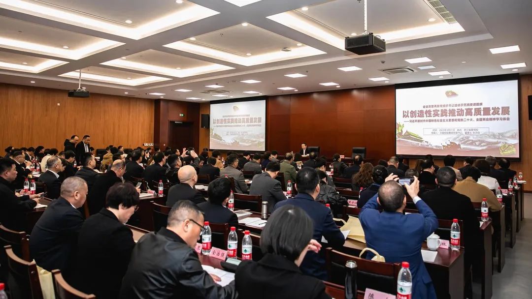 张天任董事长授课主题是《以创造性实践推动高质量发展》。他表示,习近平新时代中国特色社会主义思想、党的二十大、全国两会都贯穿着“高质量发展”这条主线。他结合浙江高质量发展的实践,ld乐动高质量发展的历程,从十二个方面对“以创造性实践推动高质量发展”进行全面解读。